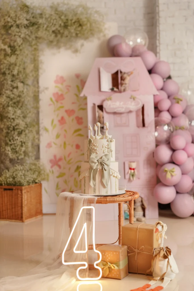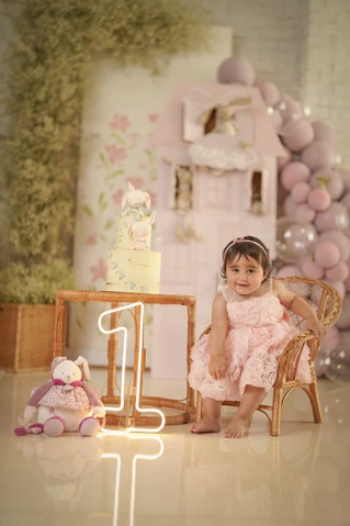 دکور ملایم بنفش و سفید ما با پسزمینهای آبرنگی از گلها و بادکنکهای شیشهای حرفهای، فضایی رویایی برای کوچولوی ۱ تا ۵ ساله میسازد. استند عدد تولد، صندلی و میز حصیری با گلآرایی ظریف، این انتخاب را به لوکیشنی ایدهآل برای عکاسی تولد و ثبت لحظههای ماندگار تبدیل کرده است.