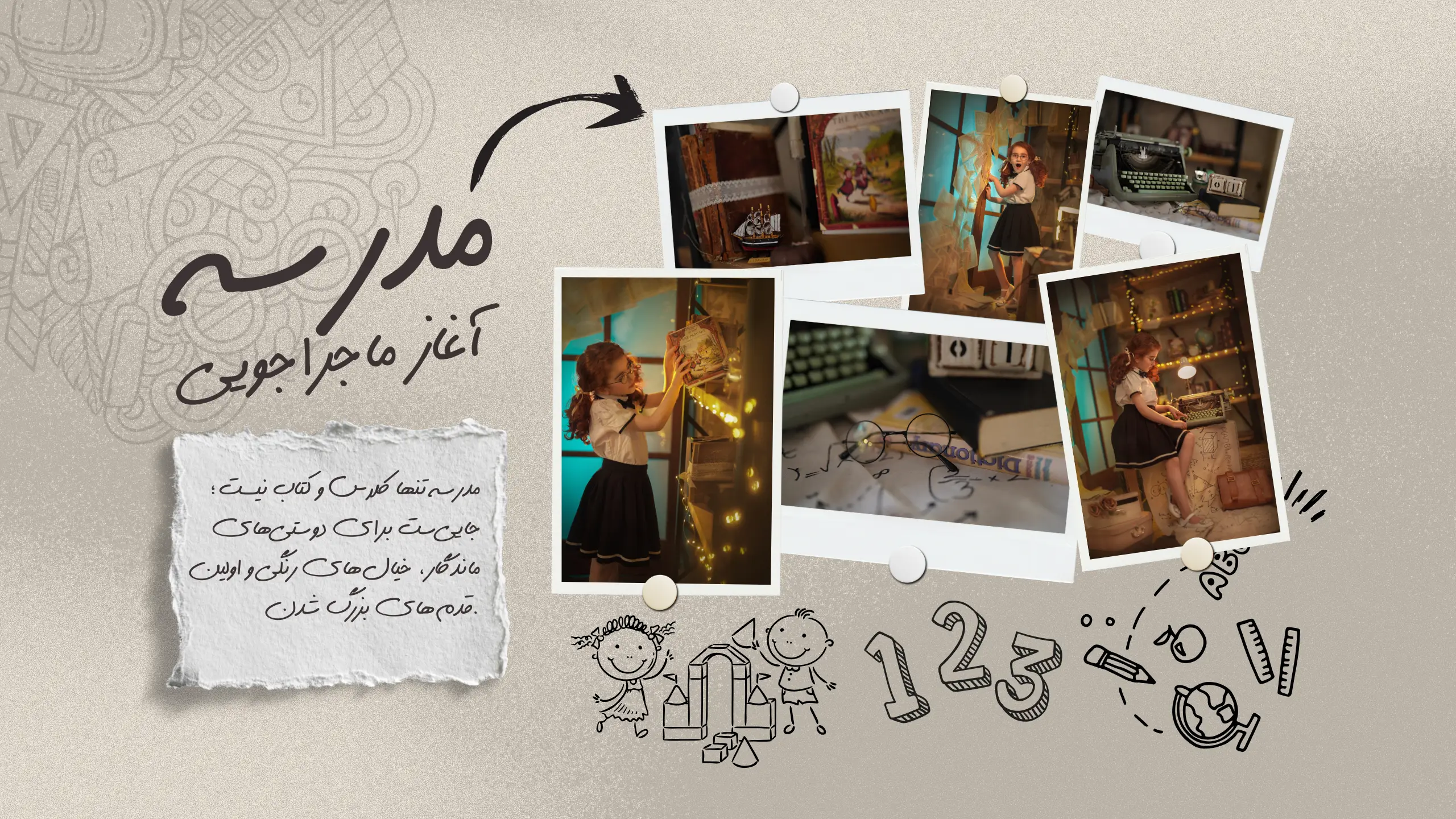 دکور مدرسه ما با حالوهوای قدیمی، میز و صندلیهای چوبی، تایپ رایتر رنگی، کرهی جغرافیا و چراغ مطالعه، بچهها را به کلاسهای نوستالژیک میبرد. این تم جذاب، انتخابی ایدهآل برای عکاسی یادگاری و ثبت روزهای اول مدرسهی دخترها و پسرهاست.